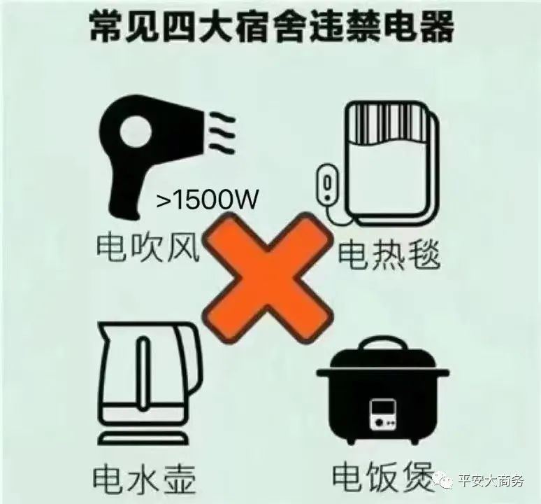 三、禁止在宿舍使用火炉、热得快、电热锅、养生壶等大功率电器。