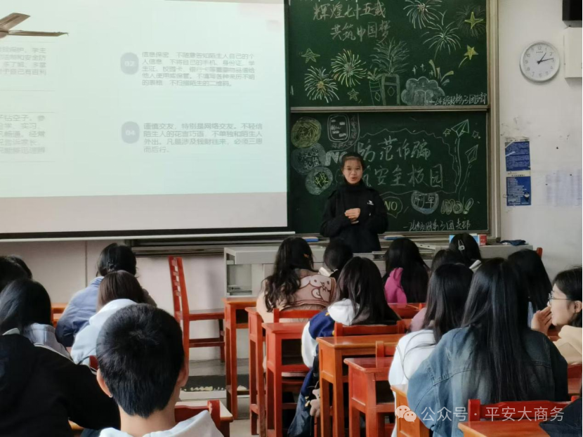 为提高同学们的防诈骗意识,我校于2024年10月23日在各班责任教室开展了“防范诈骗,共筑安全校园”主题班会。在当今数字化的时代,诈骗手段层出不穷,校园也未能幸免。为了保障我们的财产安全和校园的和谐稳定,防范诈骗已成为我们刻不容缓的任务。