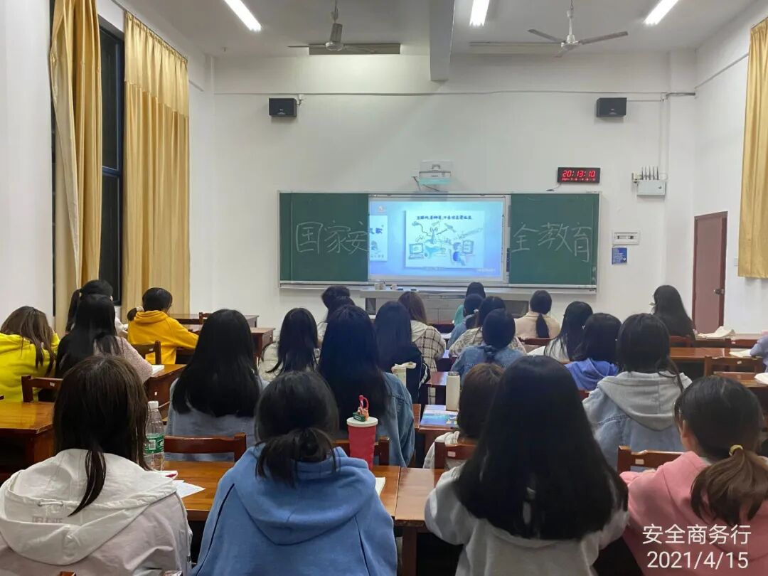 为牢固树立和全面践行总体国家安全观,推进全民国家安全教育,增强大学生的国家安全意识,2021年4月15日晚自习20:00,学???021年全民国家安全教育日宣传教育活动,由保卫处、学生治保委员会及易班发展中心组织大家观看“我是接班人”网络大课堂《国家安全我们在一起》线上直播。