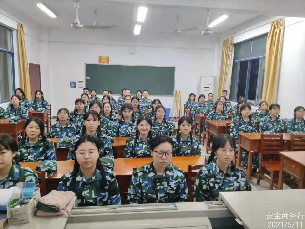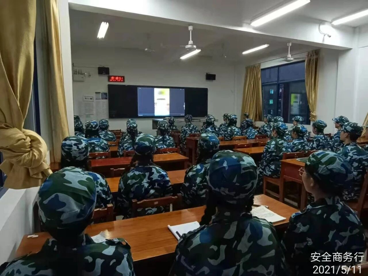 2021年5月11日晚,各连连长组织连队在责任教室观看关于电信诈骗题材的视频。