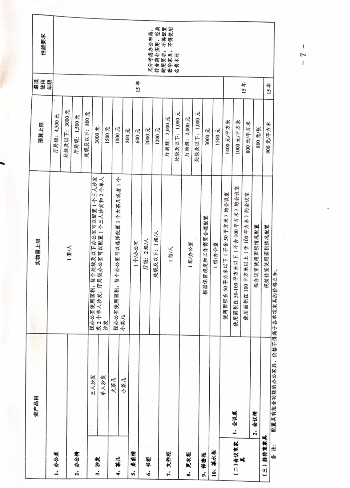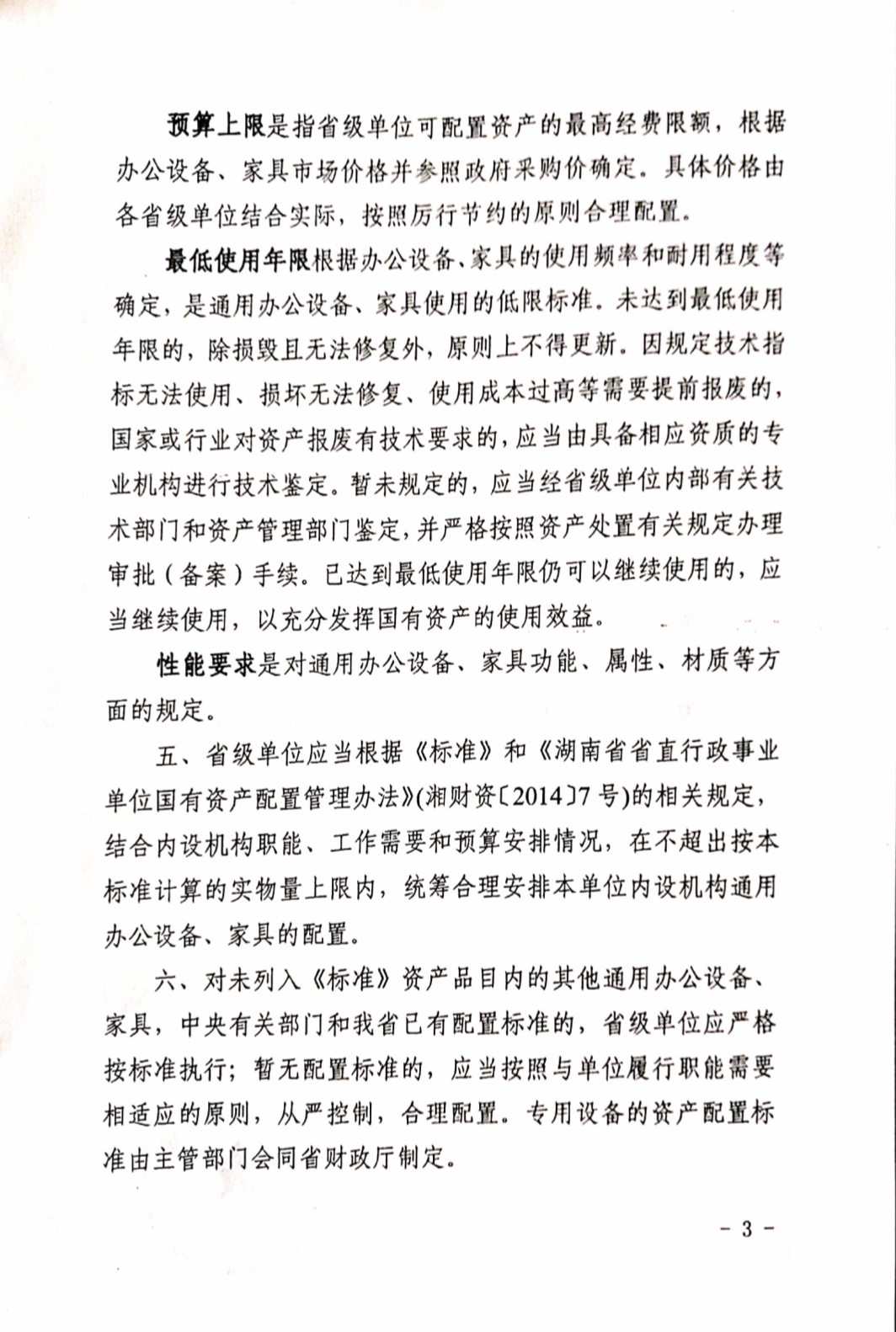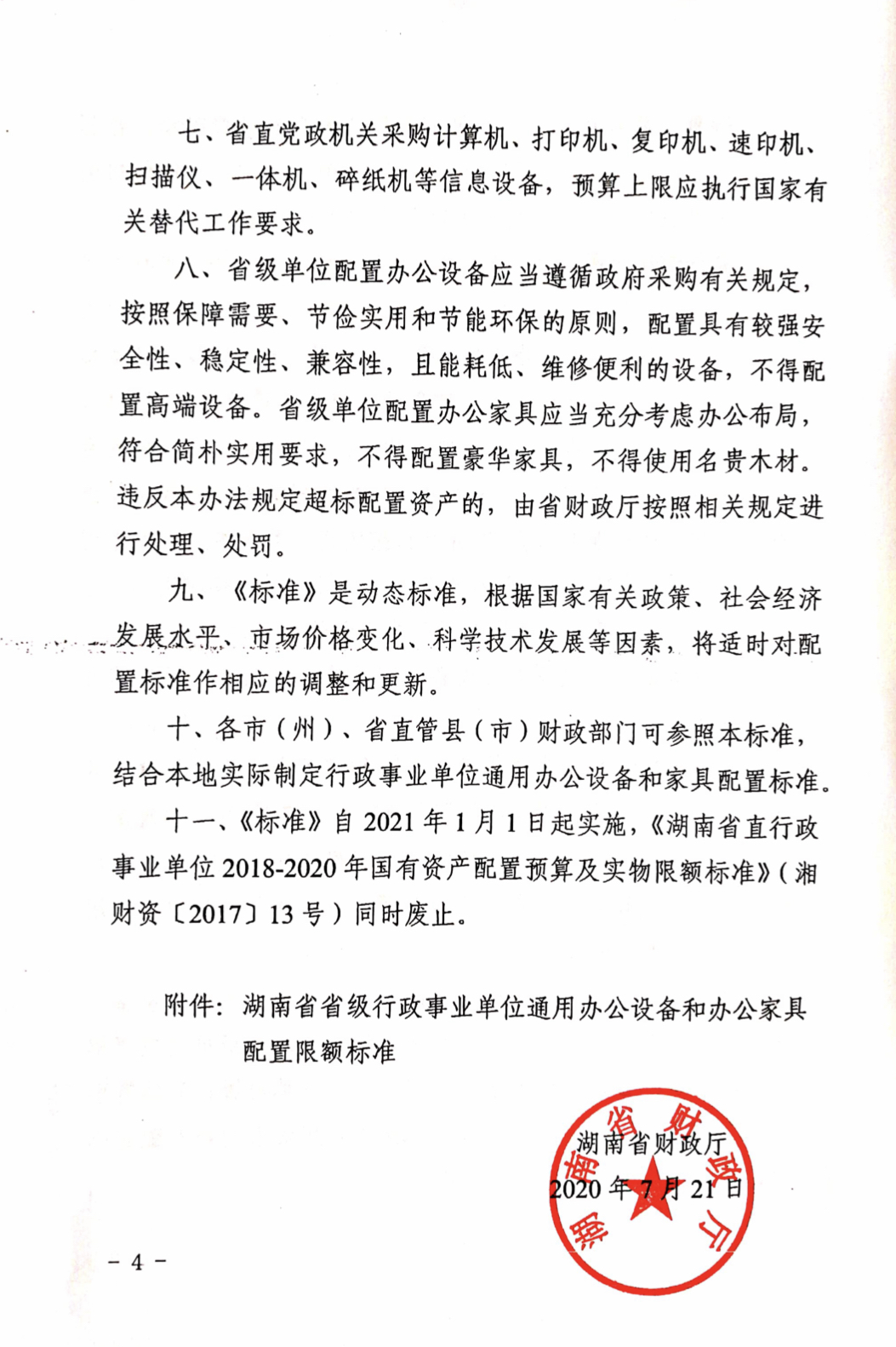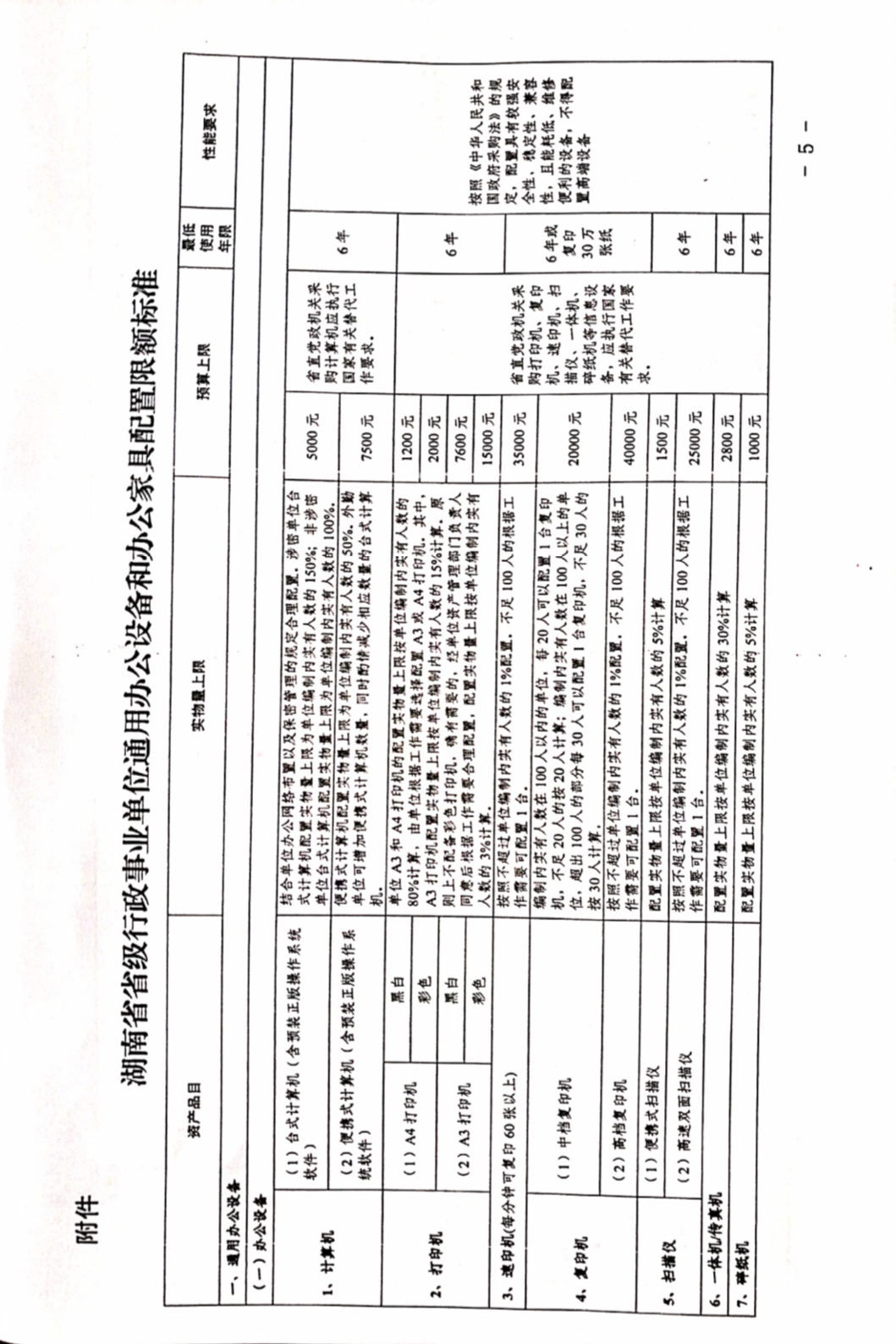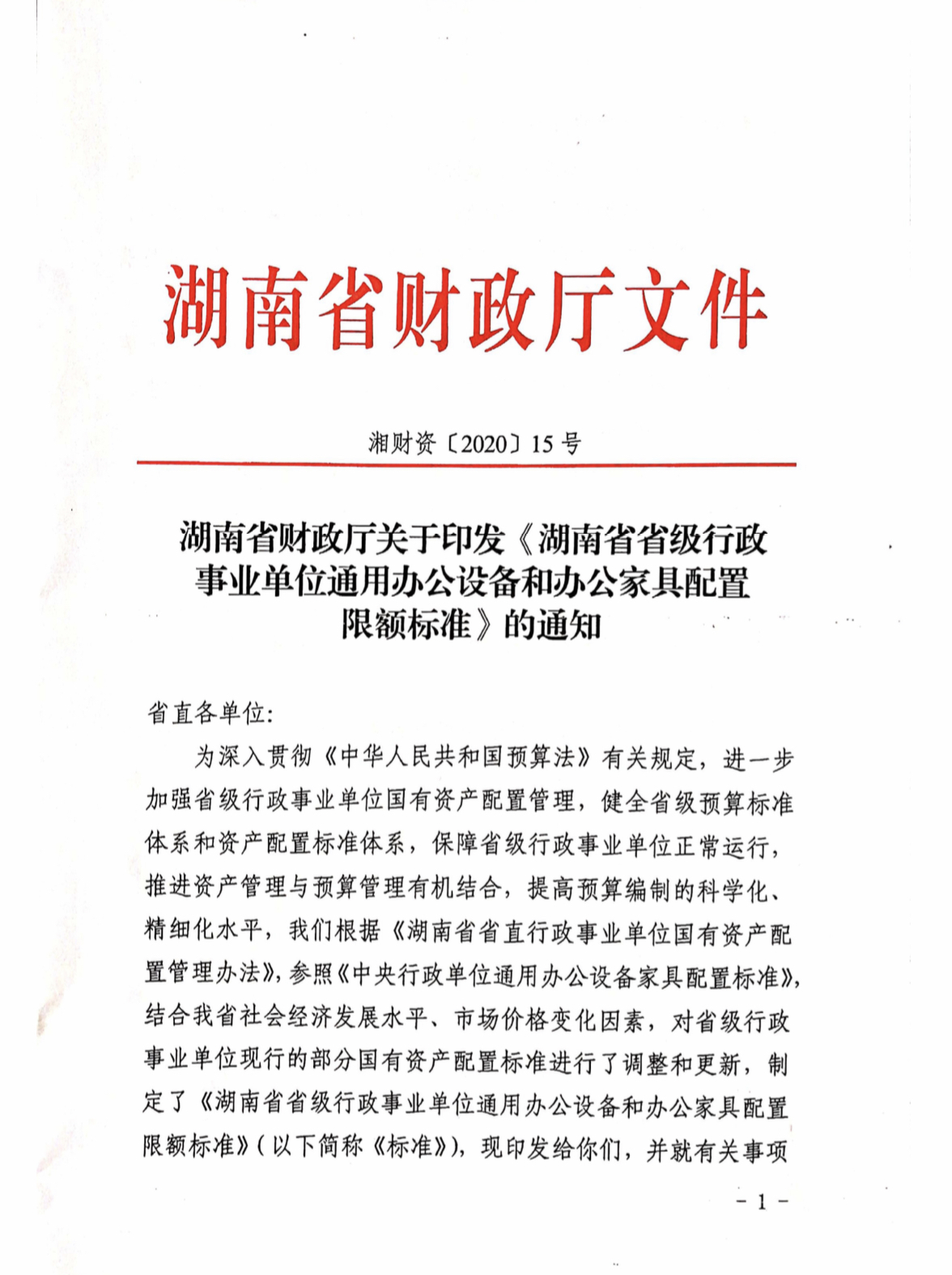 湘财资[2020]15号湖南省省级行政事业单位通用办公设备和办公家具配置限额标准