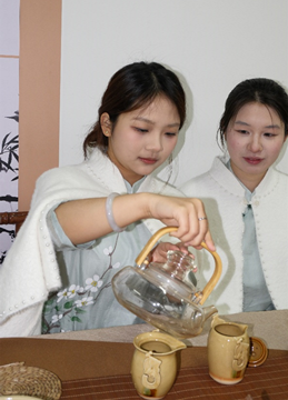 (通讯员 罗玲娜、陈湘玲)在茶香袅袅间,一场别开生面的茶文化盛宴于湖南商务职业技术学院茶学院热烈展开。近日,该校茶艺与茶文化专业精心策划的第二课堂——茶艺接待体验活动成功举办,凭借丰富多元的内容与沉浸式体验,迅速在校园里“出圈”,让师生们领略到中华传统茶文化的独特魅力,同时见证其在新时代绽放的全新活力。