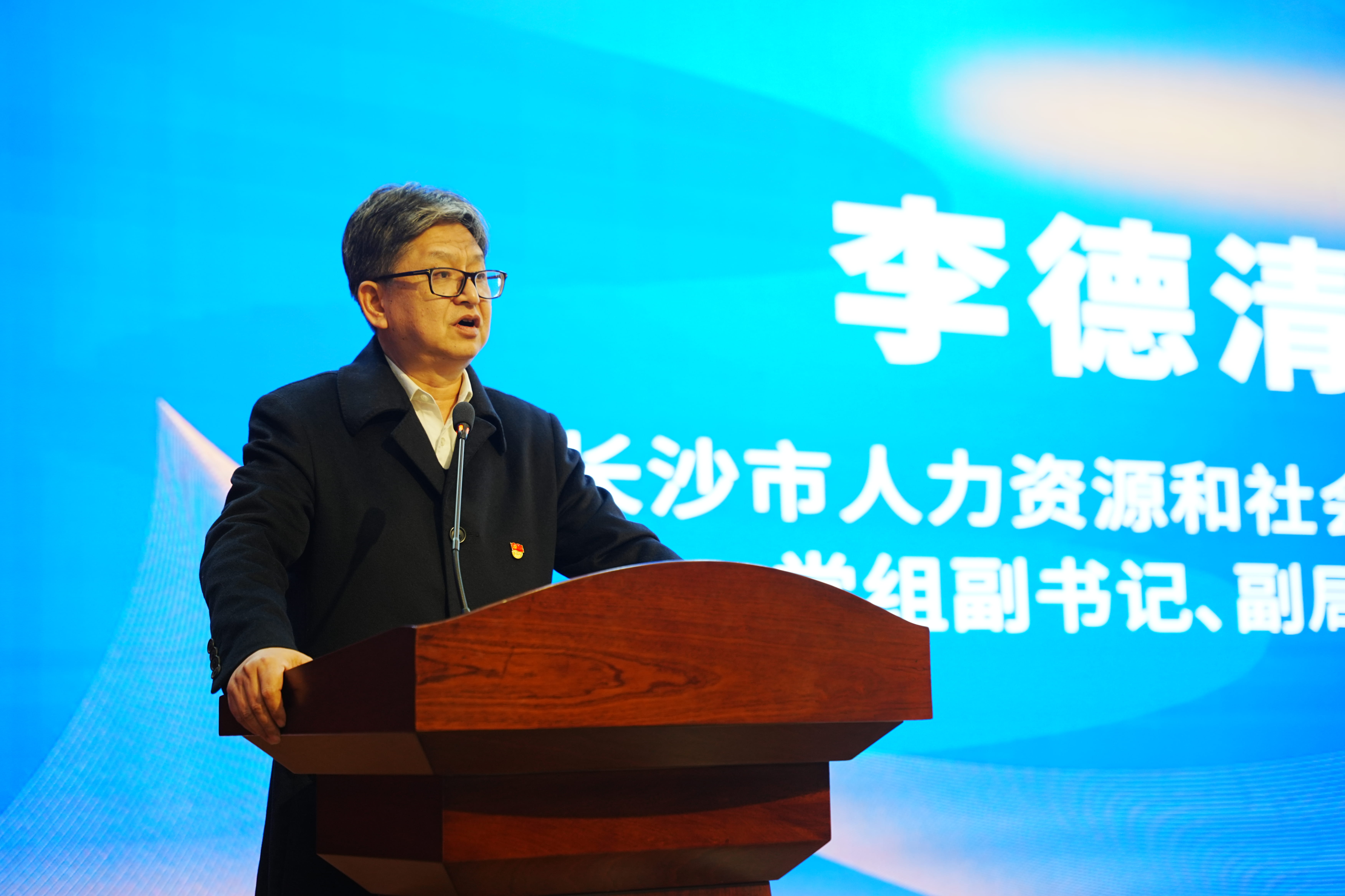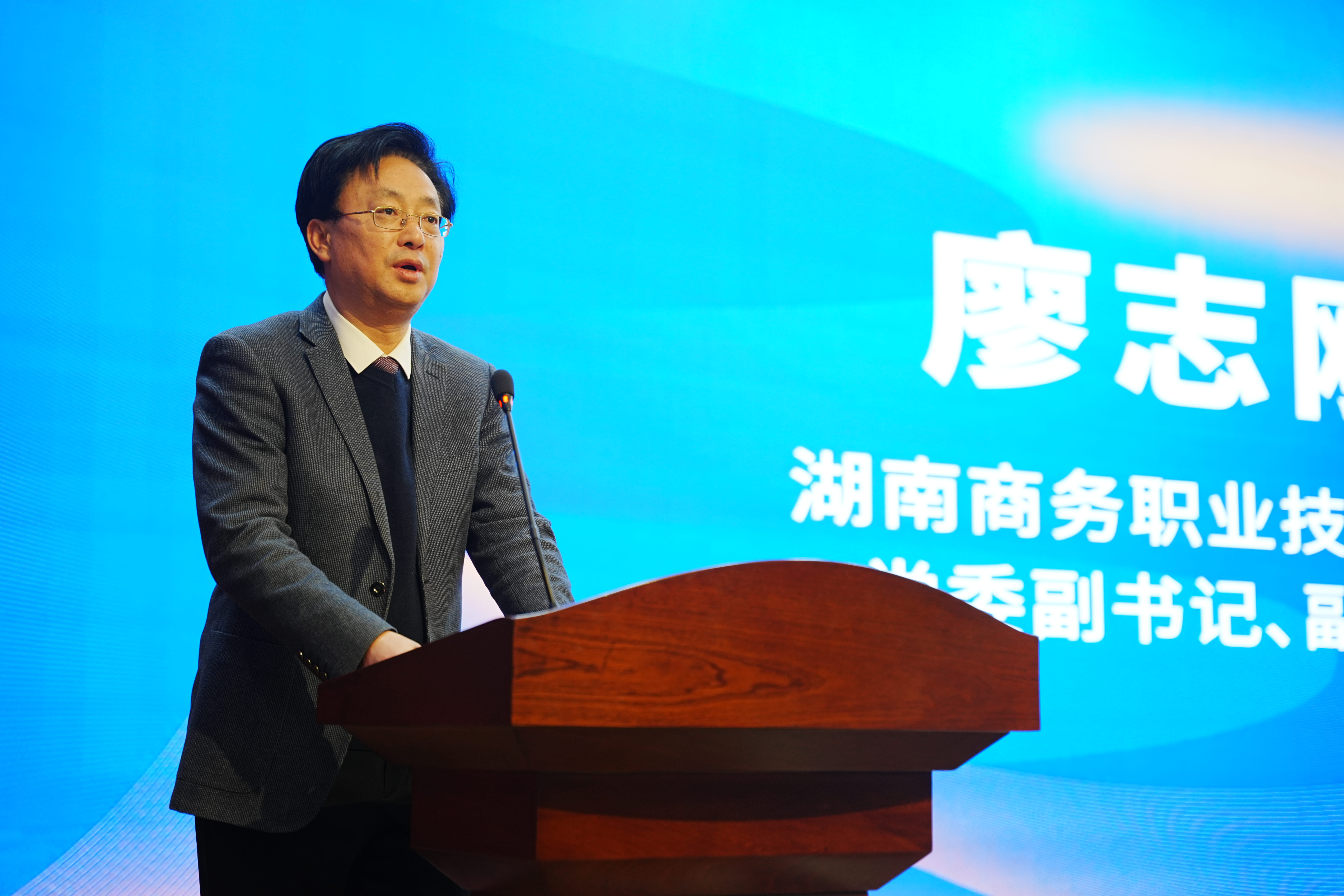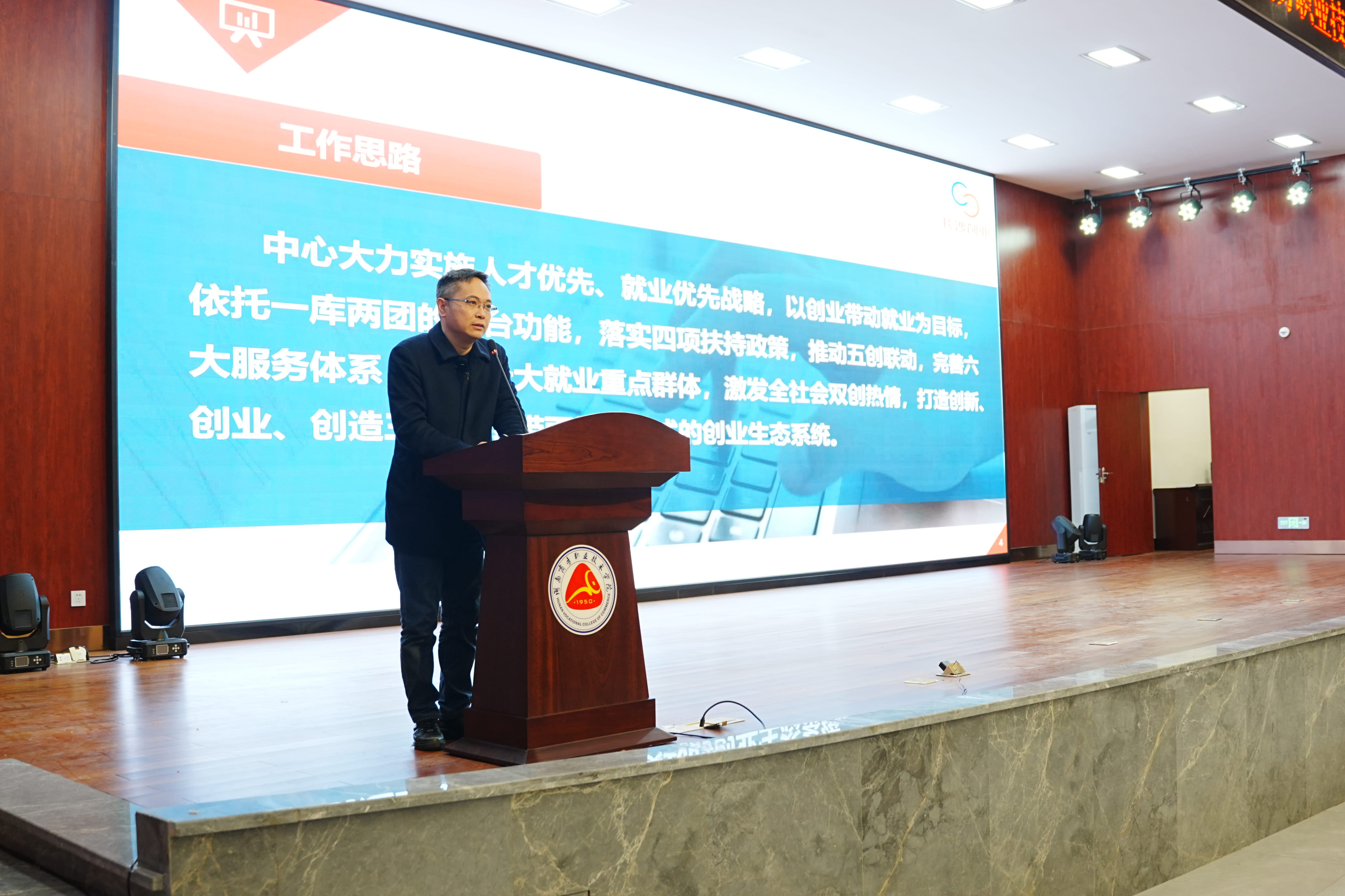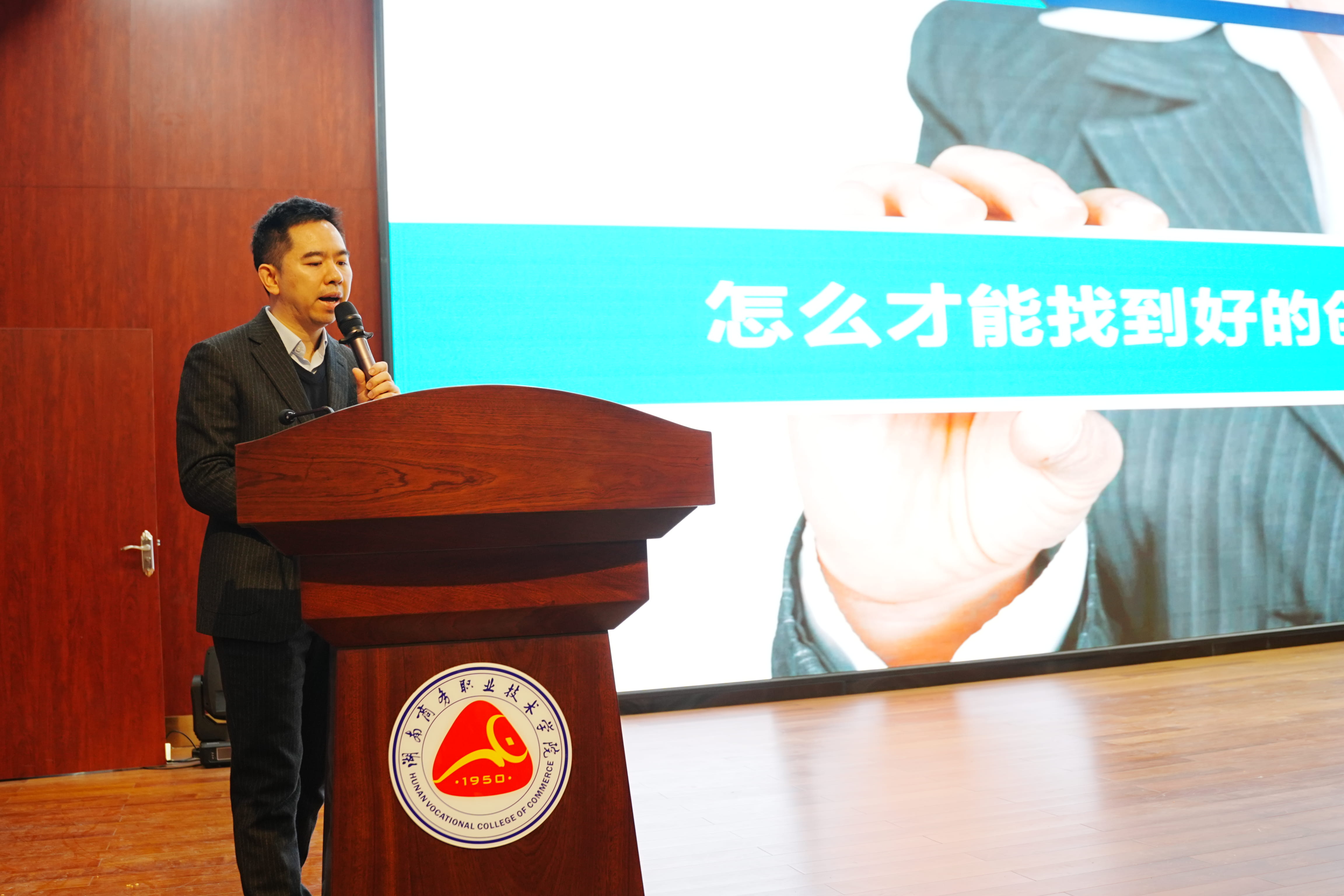 学院副书记廖志刚致辞,对长沙市人社局及优秀创业代表送政策进校园表示热烈欢迎并介绍了湖南商务职业技术学院近年来在创新创业方面所做的努力和取得的成绩。
