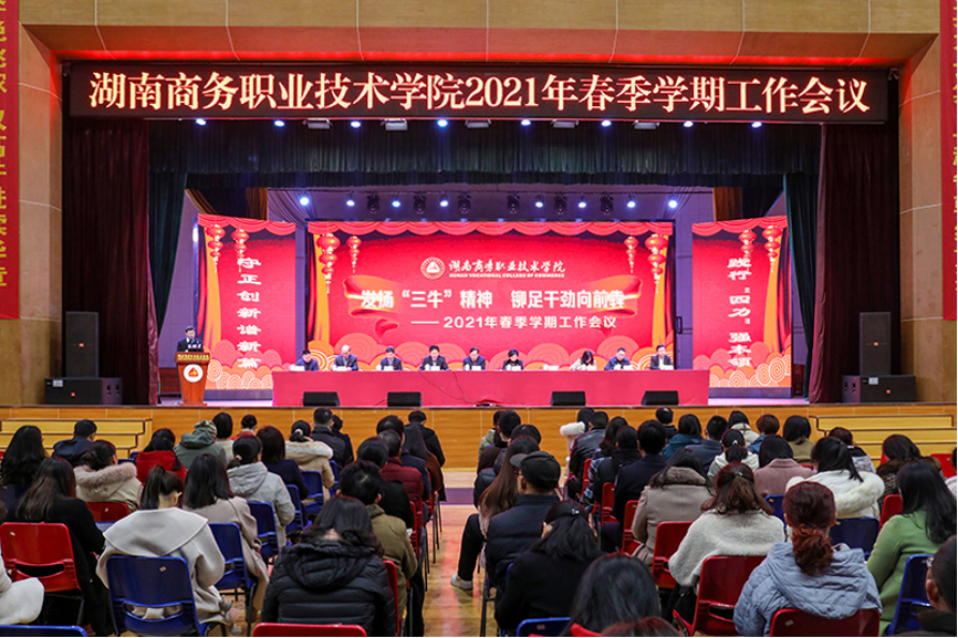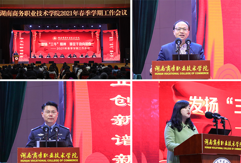 2月27日,湖南商务职业技术学院召开2021年春季学期工作会议,回顾总结了2020年度工作,部署2021年工作要点,并对13个先进集体、93名先进工作者进行表彰嘉奖。