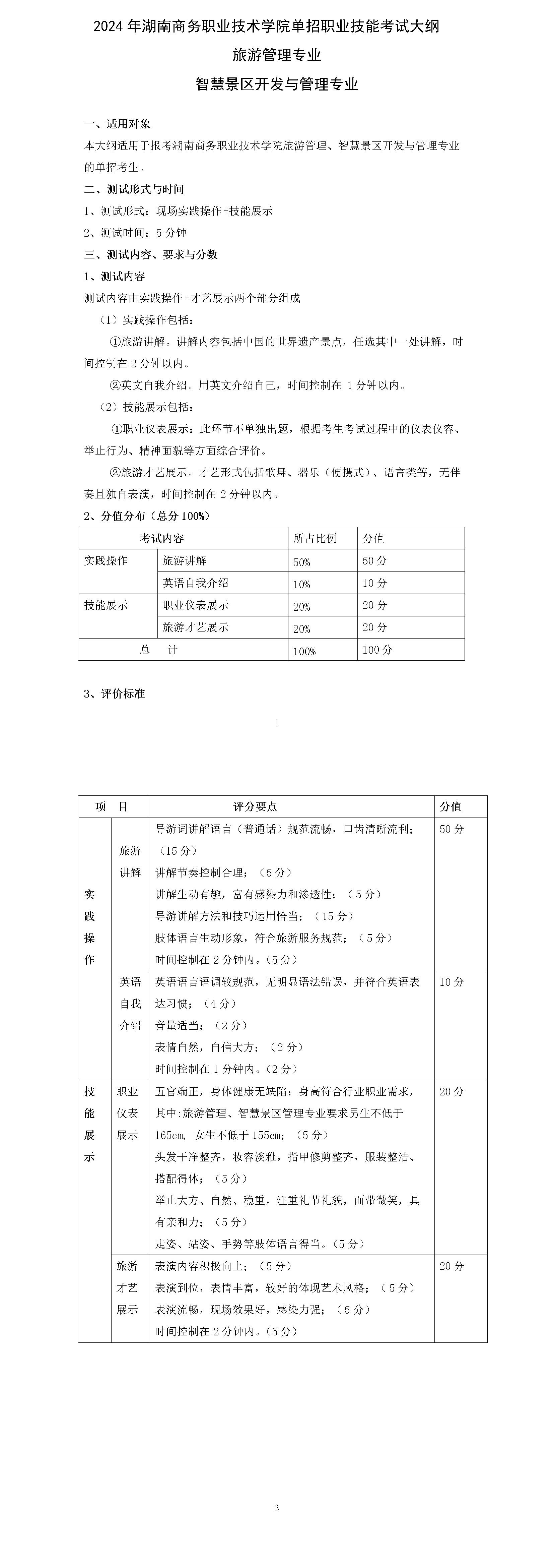 2024年旅游管理、智慧景区开发与管理专业职业技能测试单招考试大纲