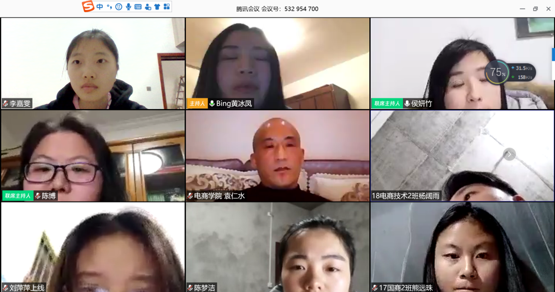 (通讯员 李嘉雯)2020年3月29日晚7:30,电商学院学工党支部全体党员在线上开展“让党旗在疫情防控和经济社会发展第一线高高飘扬”主题党日活动。电商学院学工党支部全体党员参加会议。