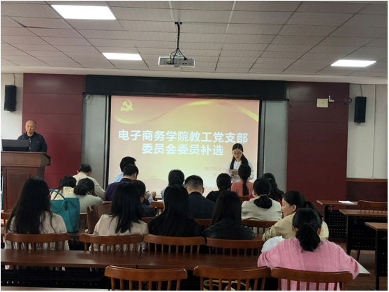 首先,电商学院党总支书记孙春明主持进行了总支委员会委员的补选;