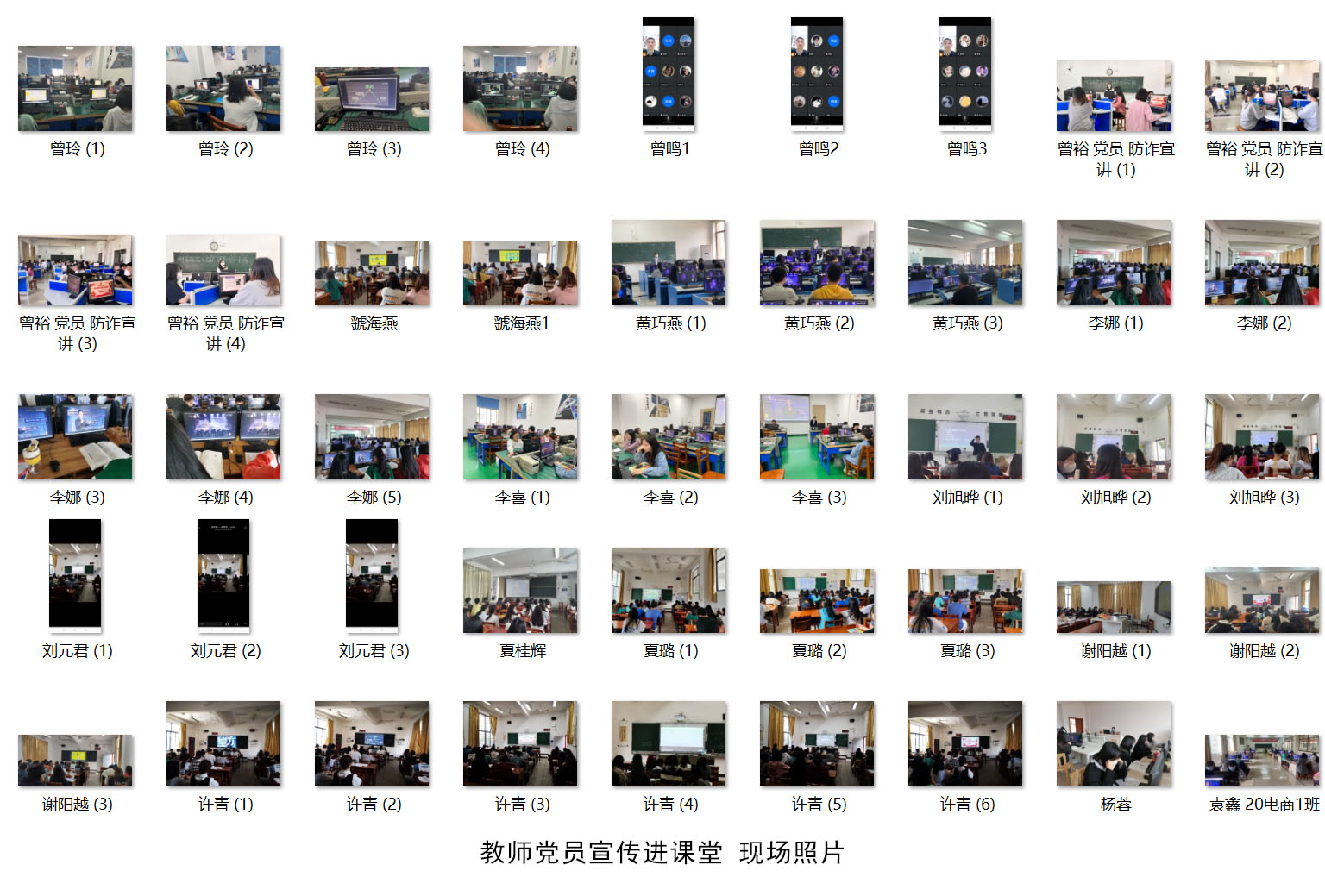 为提高学生识骗、防骗能力,有效遏制电信诈骗案件多发易发态势,切实增强学生安全防范意识,避免校园电信诈骗案件的发生。电商学院教工支部在落实新冠肺炎疫情防控要求的前提下,从2022年4月14日至5月9日这三周时间内,开展了“绷紧防范之弦,谨防电信诈骗,教师党员在行动”的活动。活动分成两部分,分别为“教师党员宣讲进课堂”与“教师党员指导学生完成防诈骗短视频作品”两种形式。