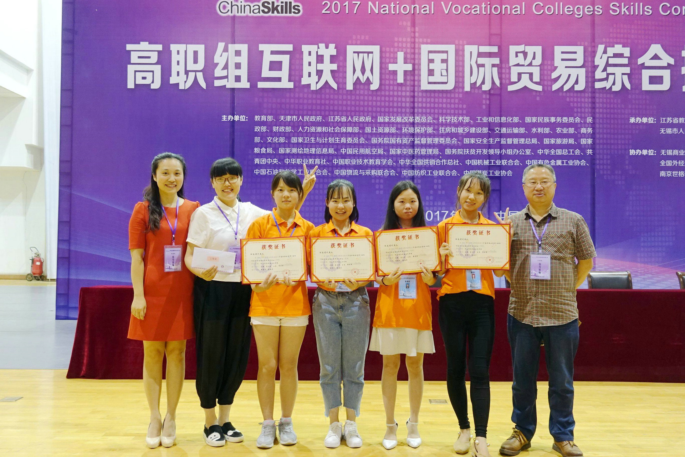 6月3日,由教育部举办的2017年全国职业院校技能大赛“互联网+国际贸易综合技能”(高职组)赛项在无锡商业职业技术学院进行,来自全国各省市自治区的72支参赛队、共计288名选手参加了此次比赛。经过一天的激烈角逐,由经贸学院易能院长带队,倪莹莹老师和张丽莉老师指导,国际贸易实务专业的刘芸、易玉婷、王京、曾丹丹四位选手组成的代表队荣获大赛团体三等奖。
