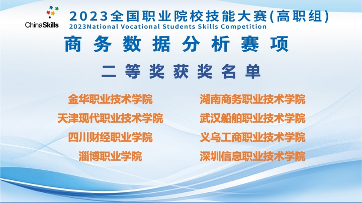 7月17日,2023年全国职业院校技能大赛高职组“商务数据分析”赛项在山东商业职业技术学院圆满落幕,来自全国30个?。ㄊ校?、自治区的79支代表队237名选手参加比赛。我校由电子商务学院杨蓉、李文娟担任指导老师,罗姝姝、张琪彬、黄星星3位同学参赛。竞赛从上午7点30分入场,至晚上10点成绩公布,历经数十小时,经过激烈角逐,三位同学沉着应战,最终在79支参赛队中以排名第10位的优秀成绩,取得了全国二等奖。