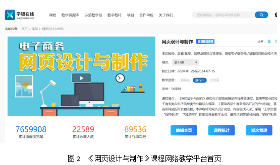 《网页设计与制作》课程主要培养学生商务网站开发的专业技能,掌握商务网站的开发和流程。课程针对网页设计岗位,内容由浅入深,采用“工学交替”“任务驱动”“项目导向”的形式开展教学活动,最终达到掌握网页设计与制作相关知识和技能的目标。教学团队共获得国家级、省级教学竞赛奖励多次,立项了多项省级课题,编写了1本课程同名教材《网页设计与制作》,2021年获得湖南省优秀教材??纬逃?020年认定为湖南省精品在线开放课程。