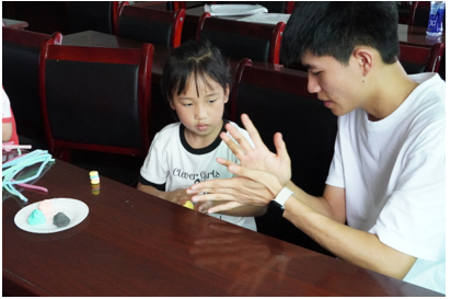 会后,志愿队开展了关爱留守儿童活动。同学们精心设计了趣味游戏和手工制作环节。社区孩子们用粘土、扭扭棒塑造出可爱的小物件,在纸盘上描绘五彩斑斓的梦想?;疃殖』渡τ锊欢?,他们纯真的笑容让志愿者倍感温暖。