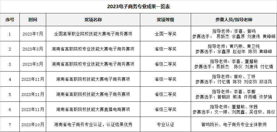 1、专业综合实力雄厚,2011年获得中央财政支持类专业项目建设,2012年立项为湖南省电子商务生产性实习实训基地项目建设单位,2015年立项为湖南省现代商务示范特色专业群项目建设单位;2023年湖南省专业认证优秀!