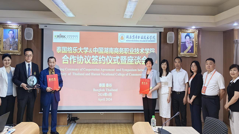 2024年4月29日,湖南商务职业技术学院院长李定珍率领出访团访问了泰国格乐大学,并与泰国格乐大学签署国际教育交流战略合作协议,两校之间就开展国际教育交流合作进行深入洽谈。