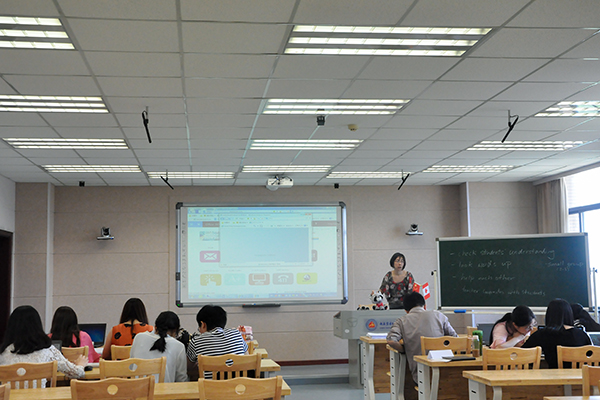 为让我院教师深入了解加拿大课程设计和评估方法,探讨跨文化背景下的教学实践,学院于5月15日—17日在办公楼六楼录播室举行了为期三天的教师讲习活动?;疃杉幽么笫ダ吐姿寡г汗式涣鞲痹撼ふ遭陀⒂锝淌贛argaret Dillion主持。中加合作项目班全体师生参与听课。