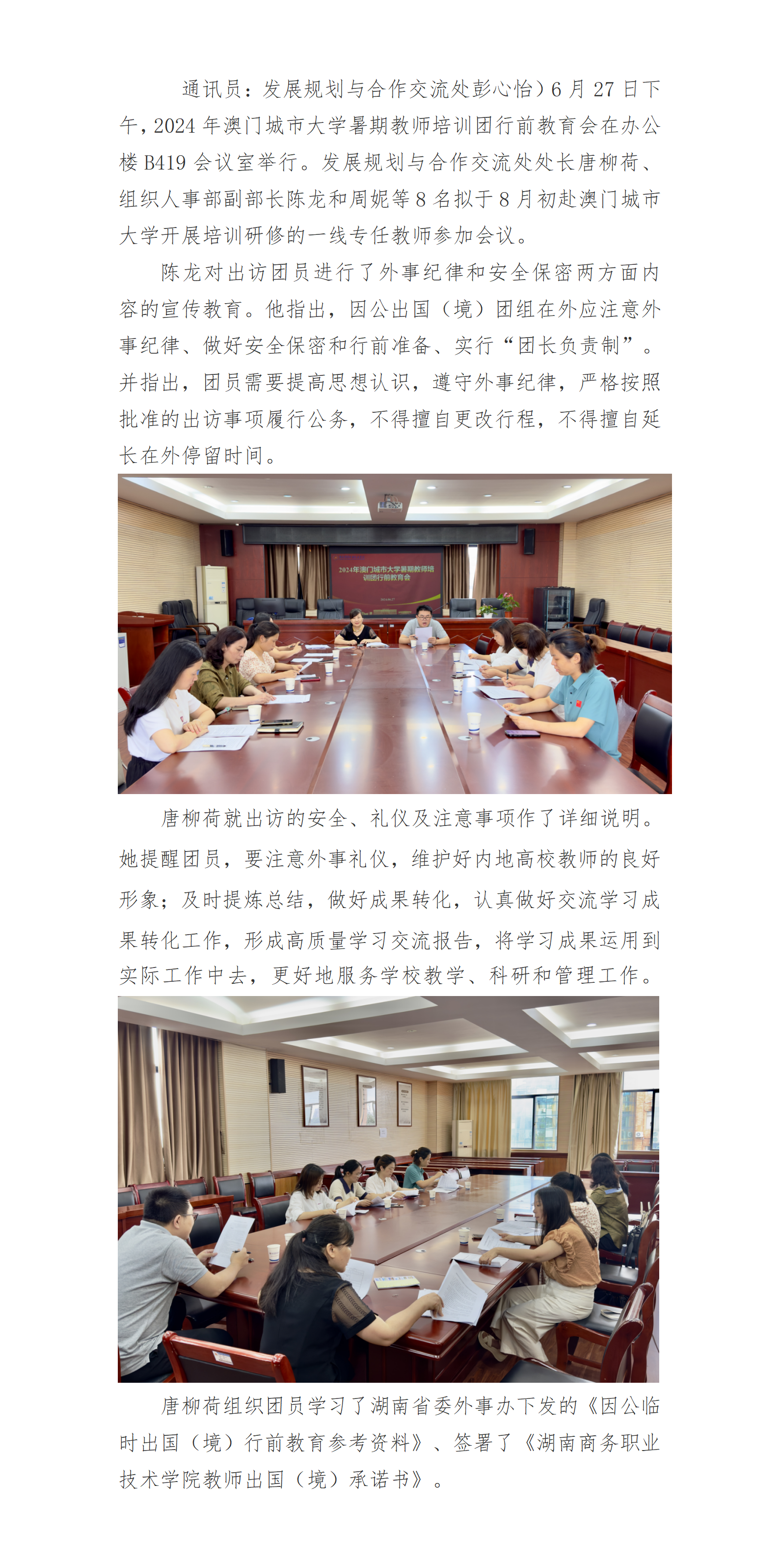 学院举办2024年澳门城市大学暑期教师培训团行前教育会