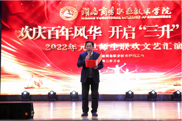 歌声袅袅辞旧岁,舞姿翩翩贺新春。1月1日下午,由学院工会主办,机关二分工会承办的湖南商务职业技术学院“欢庆百年风华,开启‘三升’征程”2022年元旦师生联欢文艺汇演在体育馆举行。学院党委书记周忠新、院长李定珍等学院相关领导出席汇演,师生欢聚一堂,共同喜迎新年。