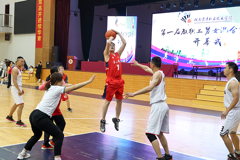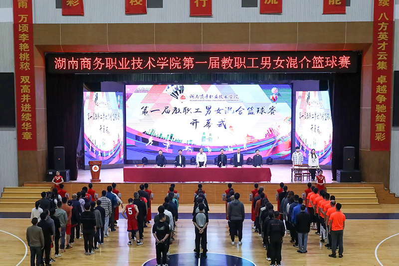 “我宣布,湖南商务职业技术学院第一届教职工男女混合篮球赛正式开幕!”5月10日晚,在热烈的掌声中,随着学院党委书记周忠新的一声宣布,来自9个分工会的教师代表们将在为期两周的赛程中,团结协作,奋勇拼搏,快乐享受篮球运动,展现商务教职员工的良好精气神。开幕式由党委委员、副院长廖良林主持。