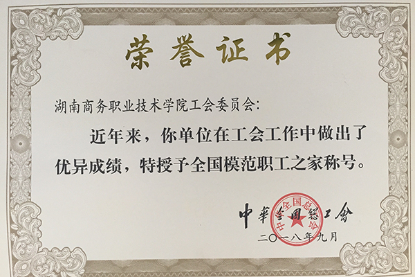 全国模范职工之家证书