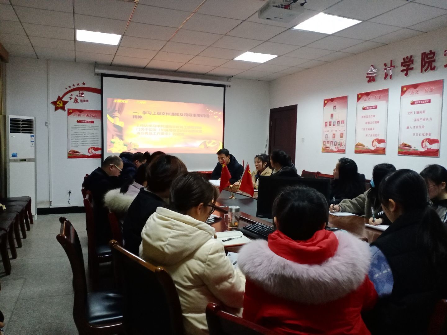 会计学院学工一党支部于2021年3月10日下午4点在办公楼310召开了三月份的主题党日活动。参加本次主题党日的为学工一党支部全体支部人员,部分因实习未在校的毕业生党员通过现场录制的视频进行线上学习并发表了心得体会。