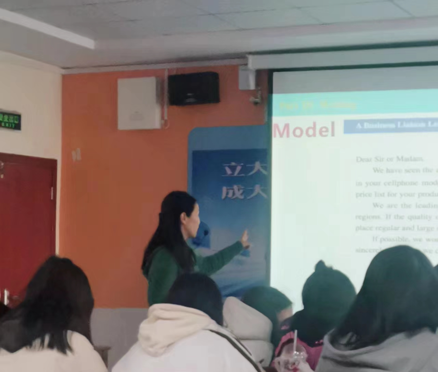 4月25日, 张莲老师讲授《大学英语(二)》课程,张老师在写作信函讲解的过程中,能多方面多角度给学生提供不同的例文,让学生反复阅读练习加深印象。利用电音片段让学生了解了建立业务关系的途经,也培养了学生的听说能力。