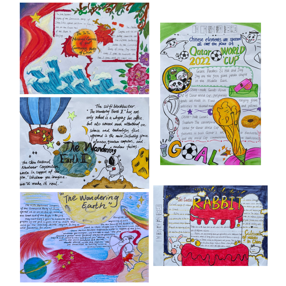 为丰富同学们的生活和培养书写英语的专业态度,宣传好字好设计的口号,更为了让大家认识到一手好字的重要性,增强同学们对英语各方面的兴趣,基础课部公共英语教研室于2023年3月21日如期举办了 “第六届英文书写设计大赛”。为同学们提供一个交流及展现自我的平台,在书写设计的世界,领略异国的风采。这次比赛为小组赛总共有500多名同学参加,共组成132个小组,各小组学生通力合作,将英语学习能力与创作能力相结合,作品书写流畅美观,手绘图案唯美,版面设计新颖,成就了一幅幅佳作。教师们从手抄报的英语书写是否规范、版面设计是否美观合理、主题是否鲜明得当等等方面对每幅作品进行了细致评价。