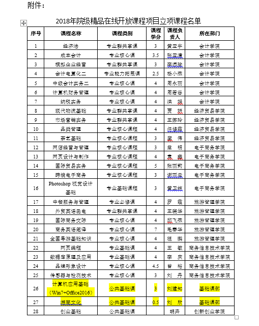 基础课部两门课程获2018年院级精品在线开放课程项目立项