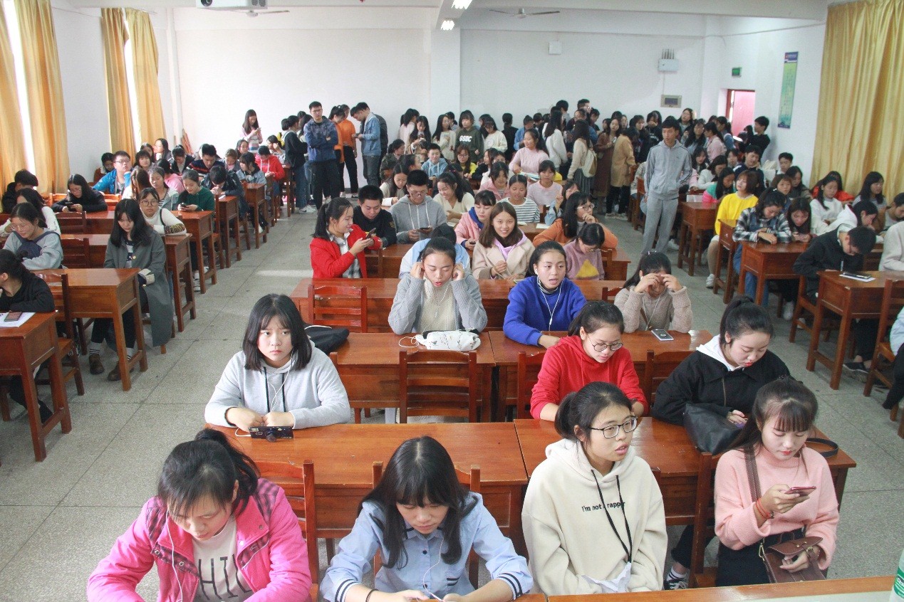 为进一步丰富我院校园文化生活,增强学生自觉继承发展中华优秀传统文化的意识,提升朗诵水平及和综合素养,并选拔湖南省第二届大中小学生中华经典诗文诵读竞赛参赛选手,基础课部文化素养教研室,于2018年10月23日举办了湖南商务职业技术学院第二届“中华经典诗文诵读”竞赛初赛活动。 由于学生积极响应,报名人数众多,竞赛所需工作人员数量较大,文化素养教研室发动16级文秘班学生及其他学生会干部参与到工作人员队伍中,并对工作人员进行了指导、安排,以保证活动顺利开展。本次竞赛,初赛参赛人数达412人,参赛节目339个,经过五组评委评审,17个节目进入决赛。