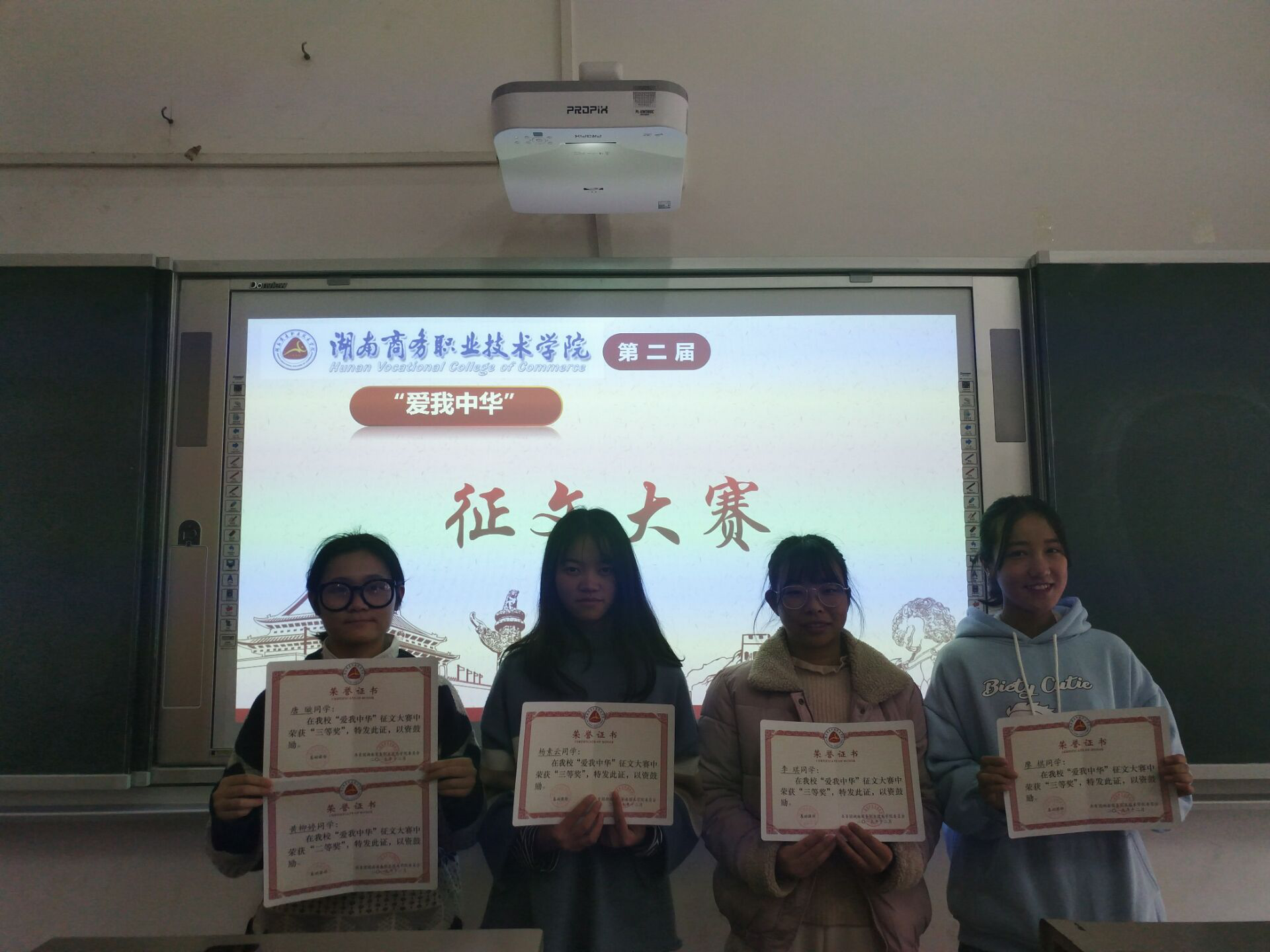对获得一、二、三等奖同学分别奖励300、200、100元,并均颁发荣誉证书。希望获奖者再接再厉,更加积极地参加活动,为自己的青春梦想不断的努力提升自身实力;同时,希望其他广大同学向获奖者学习,唱响属于我们这一代人的爱国之歌。
