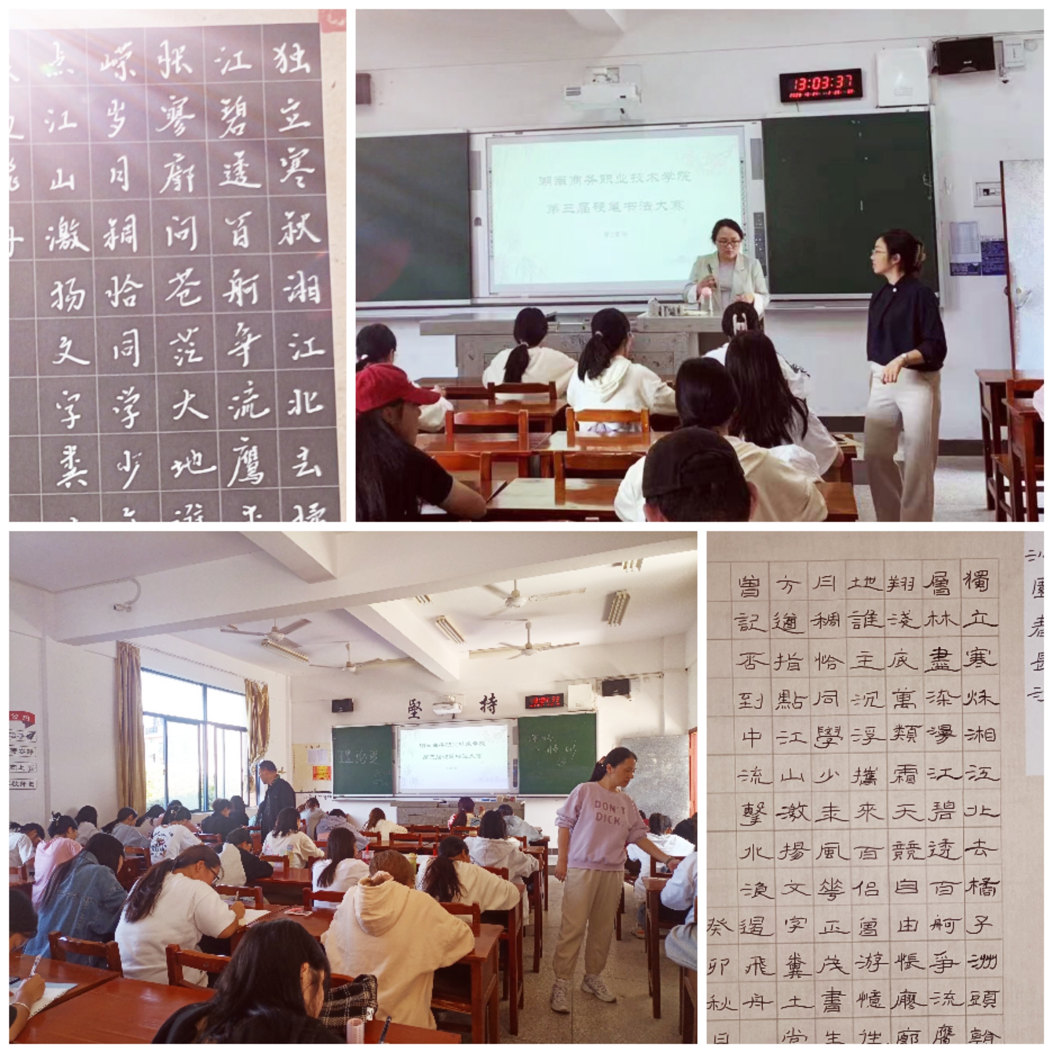 练中华书法,承传统文化。书法作为我国特有的传统艺术,是中华民族智慧的结晶。作为一门独特的传统艺术形式,硬笔书法也在一笔一画的力度和节奏中追求准确与稳定,表达出自我情感和个性特点。为进一步丰富我院校园文化生活,增强学生自觉继承发展中华优秀传统文化的意识,提升本校大学生书法素养,10月24下午,基础课部联合院团委在博思楼举办了湖南商务职业技术学院第三届硬笔书法大赛,并于10月31日中午举行了颁奖仪式。