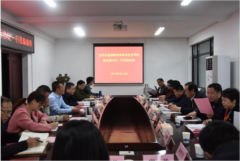 4月14日,由党委书记周忠新率队,纪委副书记陶炎焱随队赴长沙卫生职业技术学院交流学习。长沙卫生职业学院党委书记罗文章热情接待了周忠新一行并召开座谈会。