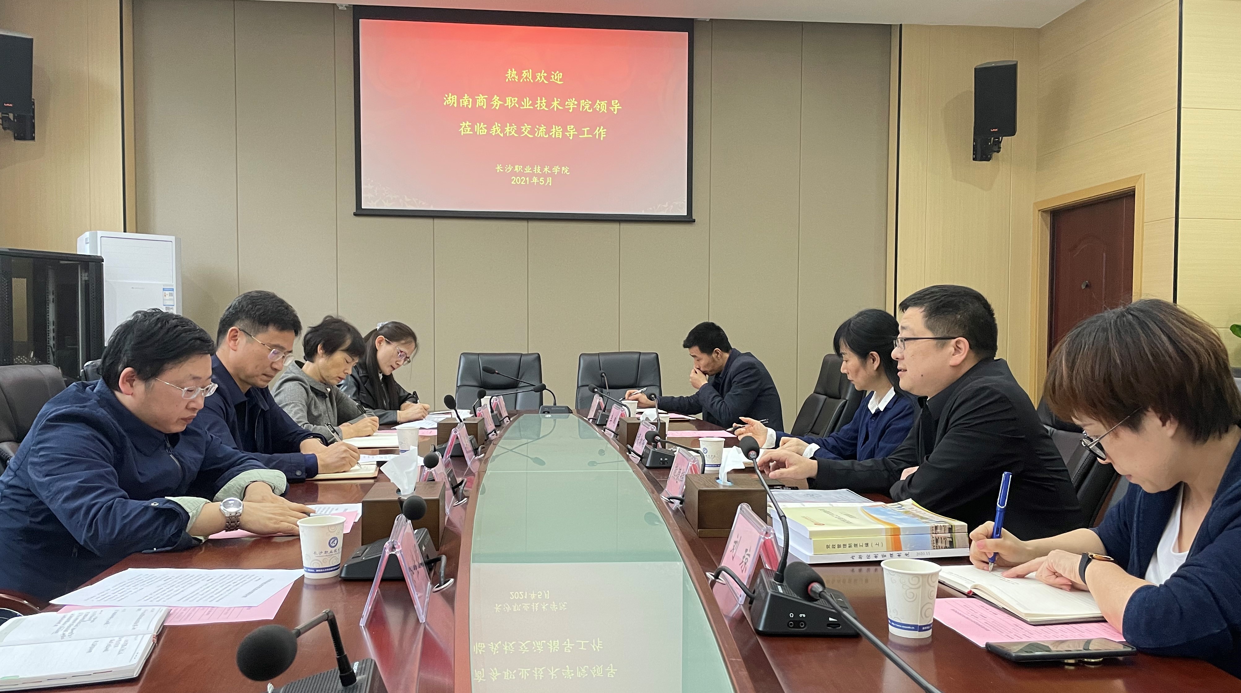 2021年5月21日下午,学院纪委书记姜华斌率领纪委副书记陶炎焱、纪委委员许立兰、实训与信息管理中心主任谢立靖、纪检监察室干事徐佳妮前往长沙职业技术学院学习交流,该院纪委书记胡湘梅、纪委副书记熊德辉、纪检监察审计室副主任刘琼、信息中心副主任姚正超与我们进行了座谈交流。