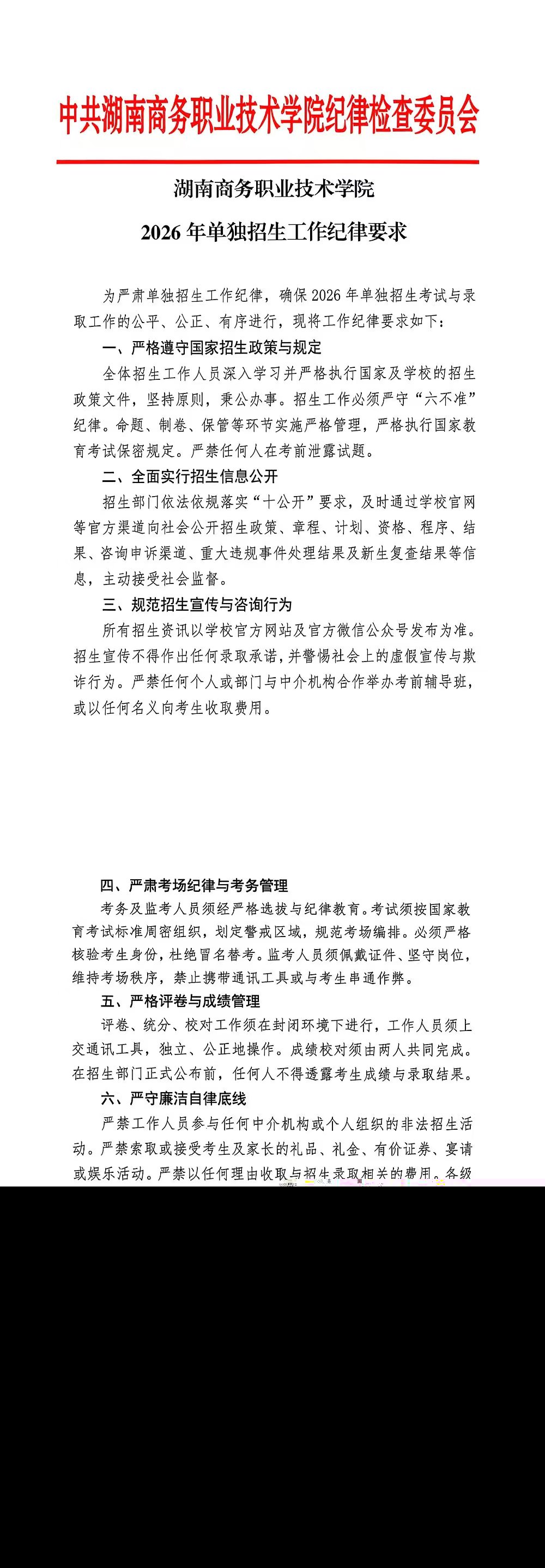 湖南商务职业技术学院 2026年单独招生工作纪律要求