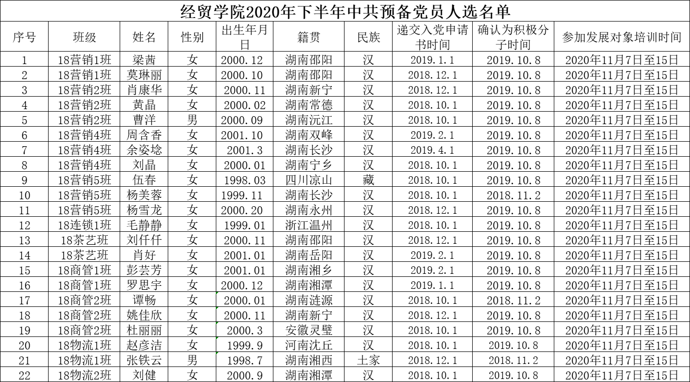 关于确定梁茜等22名同志为中共预备党员的公示