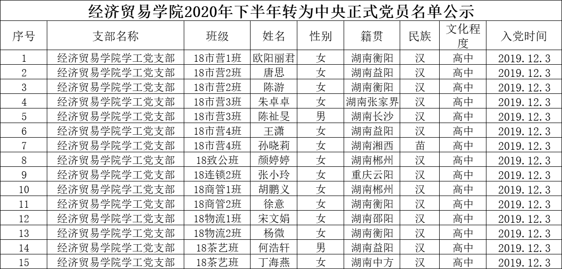 关于将欧阳丽君等15名同志转为中共正式党员的公示