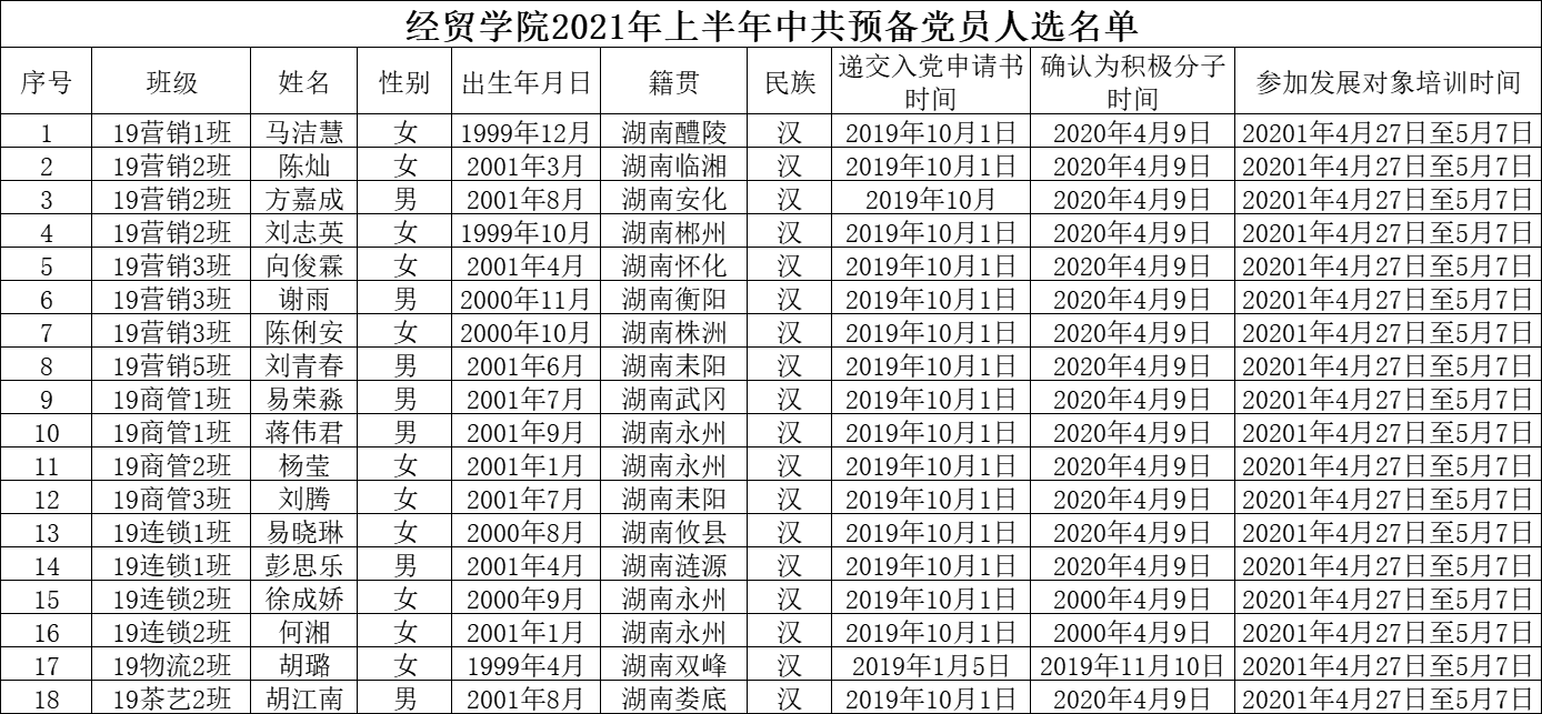 关于确定马洁慧等18名同志为发展对象的公示