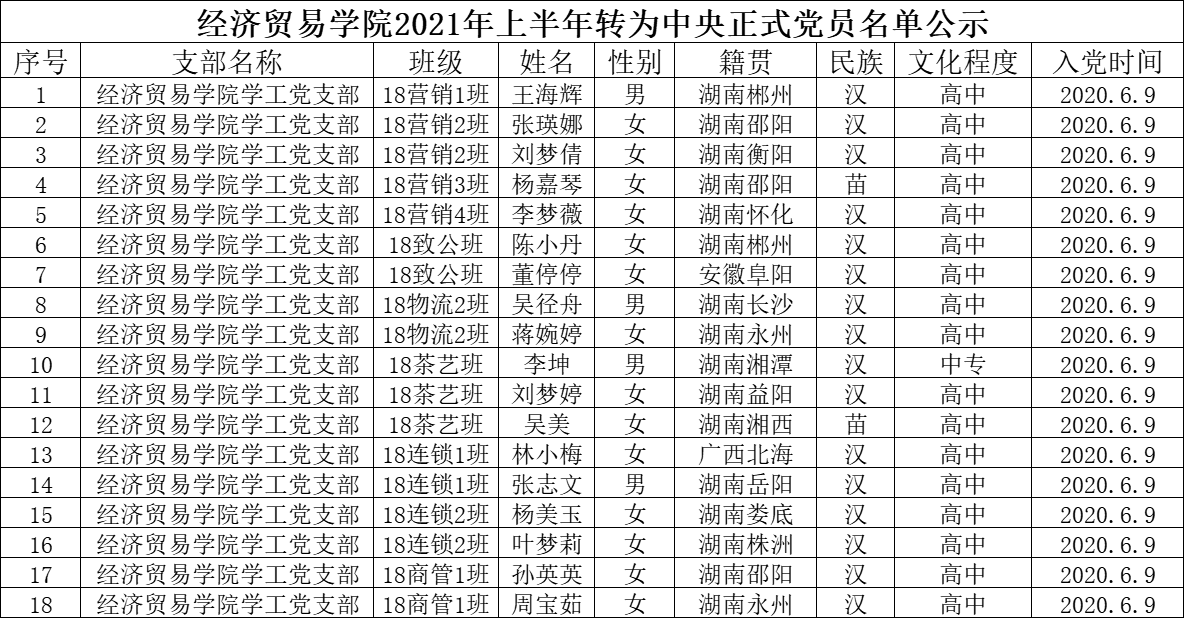 关于确定马洁慧等18名同志为中共预备党员的公示