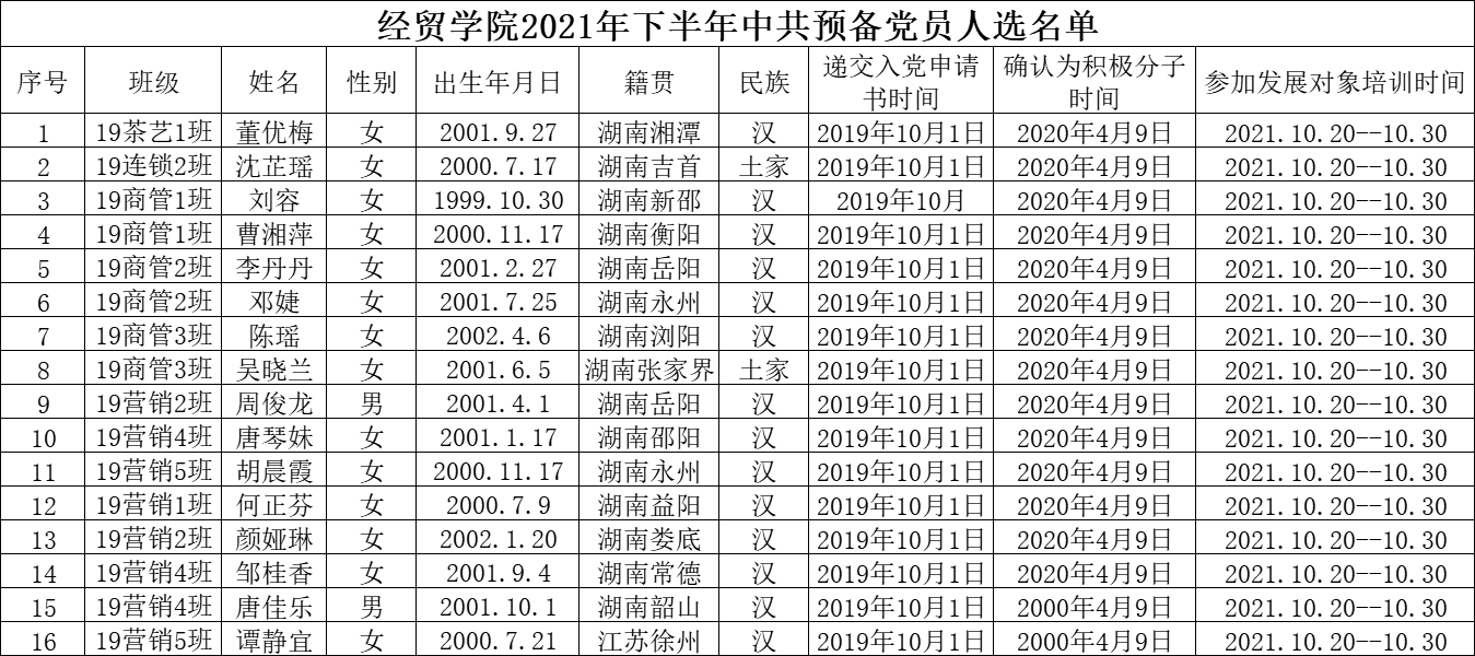 关于确定董优梅等16名同志为中共预备党员的公示