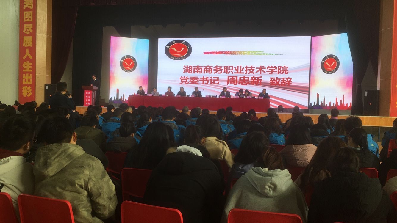 2018年11月22日,由致公党长沙市委举办的“致公助学”基地授牌暨致公•沃成班开班仪式在我院体育馆举行。湖南省政协副主席、致公党湖南省委主委胡旭晟,湖南商务职业技术学院书记周忠新,致公党湖南省委专职副主委向佐谊,致公党湖南省委副主委、长沙市委主委、长沙市人大常委会副主任王国海,湖南商务职业技术学院院长李定珍,湖南商务职业技术学院副院长杨文涛,致公党湖南省委社会服务处处长彭晖,致公党长沙市委专职副主委枭燕,中共长沙市委统战部党派处处长冯剑,湖南沃成科技有限公司董事长、致公党湖南省委社会服务工作委员会主任王静以及各市委分管副主委,社会服务工作委员会负责人,致公助学理事会成员代表,经济贸易学院院长辛磊,经济贸易学院书记皮卫,经济贸易学院副院长谢虎军,机关社会服务专干,致爱小组代表,致公班班主任代表,郴州筹委负责人,沃成科技企业团队,致公·沃成班学生,经济贸易学院18级市场营销1-4班学生,约300人参加仪式。