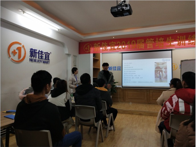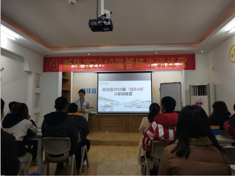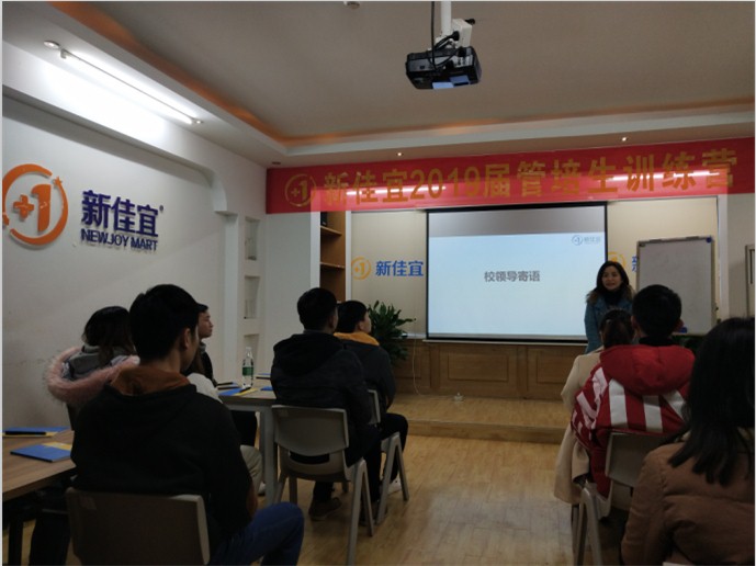 为了进一步了解和掌握经济贸易学院2019届毕业生在企业的顶岗实习情况,正确有效的指导学生顺利完成顶岗实习。2019年1月9日上午,由经济贸易学院院长辛磊老师带队,去校企合作企业湖南佳宜企业管理有限公司企业看望在此顶岗实习的学生,此次正是新佳宜2019届“店长4班”入职训练营开班。