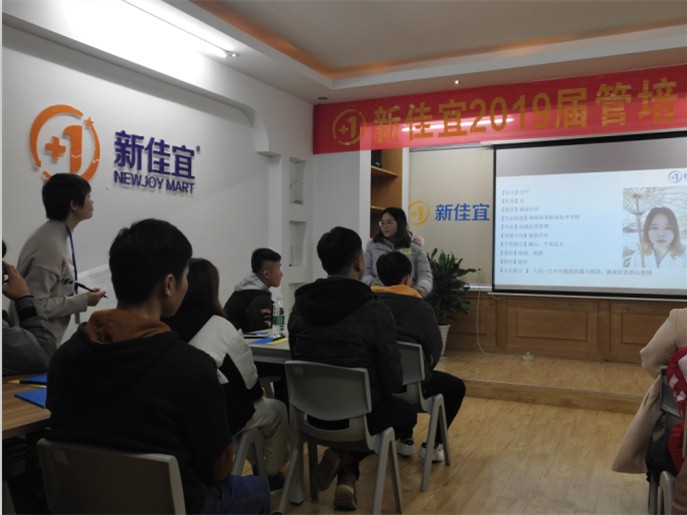 经济贸易学院连锁经营管理专业和物流管理专业共有9名2019届毕业生在该公司参加顶岗实习,分别是高朝州、任平、蔡珊珊、隆唐杰、周紫宇、陈纬湘、易佳、田婷婷和眭光旭。在入职训练营开班仪式上,同学们纷纷上台介绍自己。