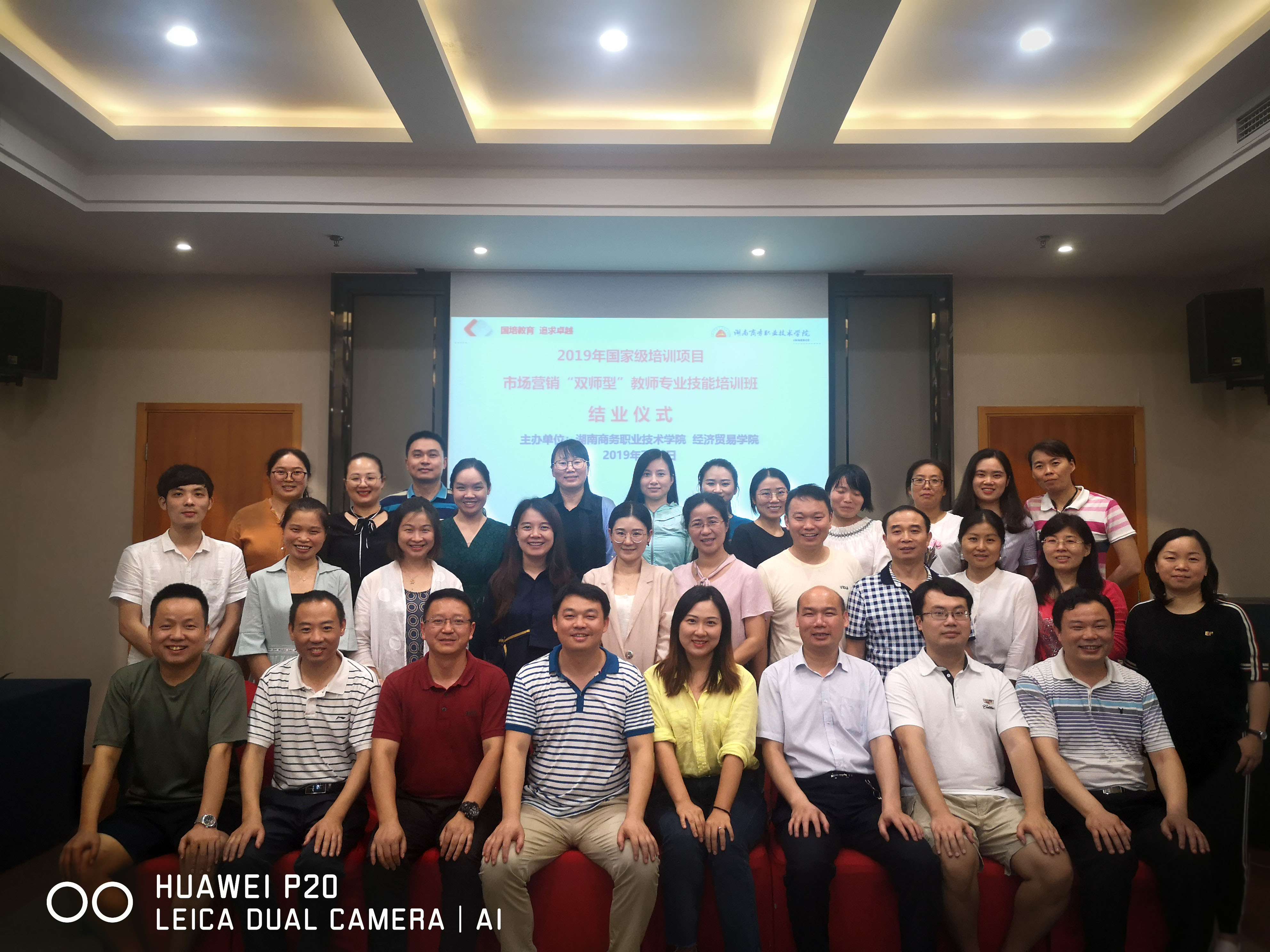 2019年国家级培训项目——市场营销“双师型”教师专业技能培训结业典礼于7月9日在长沙市五强商务中心3号会议厅举行。来自全?。ㄇ?、市)的30名高职学院骨干教师圆满完成了为期20天的培训任务。湖南商务职业学院经济贸易学院院长陈学忠、副院长谢虎军、市场营销专业教研室主任王娜玲以及全体培训学员参加典礼。典礼仪式由陈学忠教授主持。