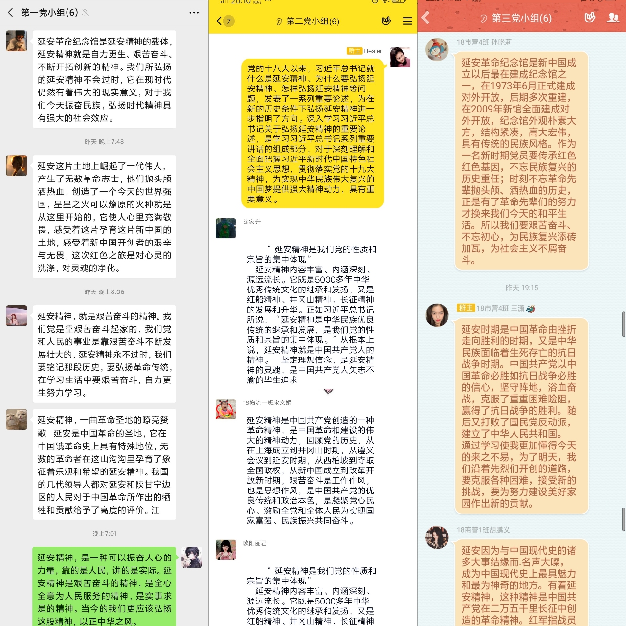 随后,全体党员分组交流观后感,分享无数革命先烈用鲜血和生命铸就的精神瑰宝,深刻领悟自力更生、艰苦奋斗,实事求是、理论联系实际,全心全意为人民服务的延安精神。