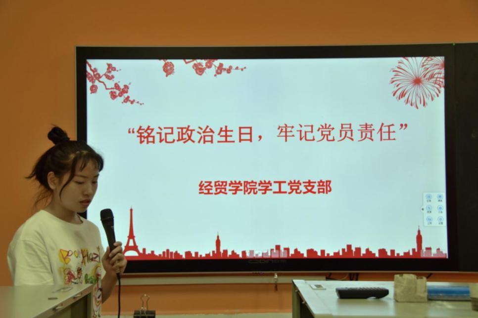 (通讯员:颜婷婷)2020年6月9日下午5:00,经济贸易学院学工党支部全体党员在第二教学楼101教师开展“铭记政治生日,牢记党员责任”党日活动?;疃裳吃蓖蹁焱局鞒?。