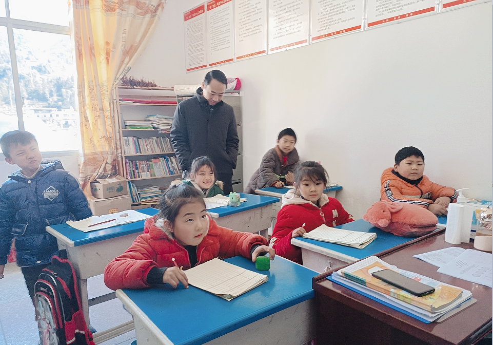 在整合教学资源,实施撤点并校的政策下,芙蓉村小学教学点合并到仙溪镇完全小学,芙蓉村是仙溪镇最偏远的村庄,学生到仙溪镇完小的上学路有25公里,且山路崎岖,通行车辆少。仙溪学区的学校没有能力购置标准校车,部分家长自发地组织起来,租用私人面包车接送孩子,但是这类车存在严重的安全隐患。有的家长则在学校附近租房陪读,但是租房费和生活费一个学期下来要比在家多花费3000元到4000元。因此,应村民要求,芙蓉村小学教学点恢复,但是由于原来的校舍已经被鉴定为危房,目前只能借用村民服务中心开展教学,缺乏一些基本的教学设施。学校现开设一、二、三、四年级共4个教学年级,4个教学班,现有在校学生不足40人,教师4人(均为临聘人员)。尽管条件艰苦,但是教师们一直在努力提升教学质量、学生们一直保持努力学习的势头。