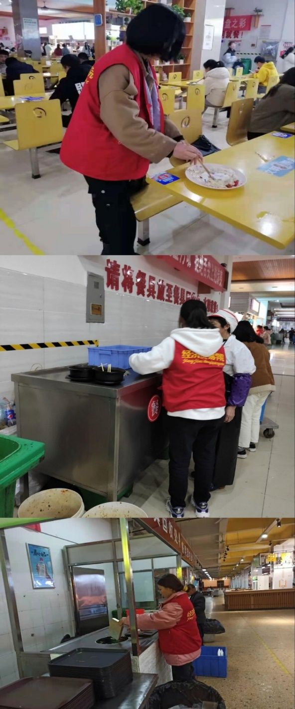 晚餐时间,志愿者们也没闲着,一起到学校食堂为食堂阿姨解决了她们的小烦恼。我们在一食堂和二食堂收拾同学们忘记放置到指定地点的餐具。如果遇到未离开的同学,我们还会耐心地对同学进行劝导,几乎所有同学都会面露羞涩,保证下次一定记得。志愿者们也在轻松愉快的氛围中继续贡献青春的力量。