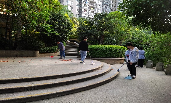 大家对沿路的落叶、塑料垃圾进行了全面又仔细的打扫,不放过任何的死角,对一个个烟头、一张张废纸、一片片落叶都被清扫干净。在大家的齐心协力下,莱茵社区的面貌焕然一新。