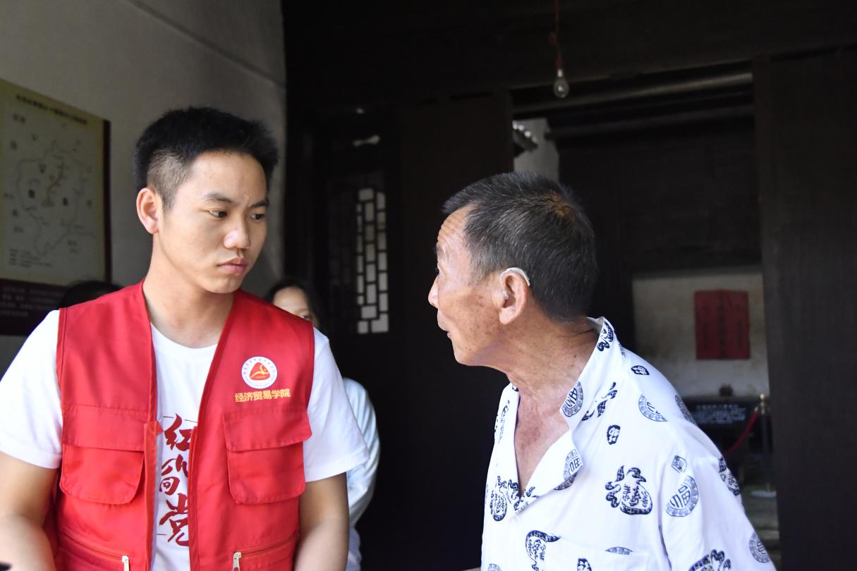 在毛泽东旧居——水口桥头江家,我们见到了江家传人江国兴。江爷爷为我们讲述了他奶奶给他讲的有关毛主席的故事——他的伯伯在劳作时候发现村里来了一个鬼鬼祟祟的陌生人,立刻把这个消息转告给了毛主席。不久,有一个人飞檐走壁而来,对着身穿毛主席衣物的警卫员开枪,警卫员当场牺牲了。遇到游客听不懂江爷爷的话,志愿者都一一耐心转述,让最原汁原味的历史故事直达人们灵魂深处。