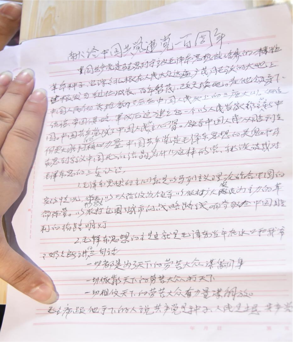 ▲江爷爷写下的《献给中国共产党建党一百周年》书信