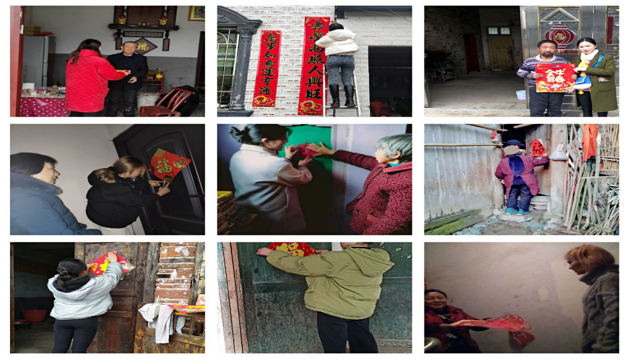 今年春节,受疫情影响,农村在外地打工的人员响应国家号召在异地就地过年,出现了很多老人小孩在家过年的情况。在此次“传递温暖·传递爱”志愿服务活动中,同志们带着寓意美好的剪纸、春联拜访当地留守的爷爷奶奶们的家,送上最真挚的新年祝福,为他们的新年添热闹、添喜庆。在给老人送去春节的温暖同时,同志们也收获到了老人们对年轻一辈的欣慰与鼓励,带来了心与心之间的温暖和祝福。